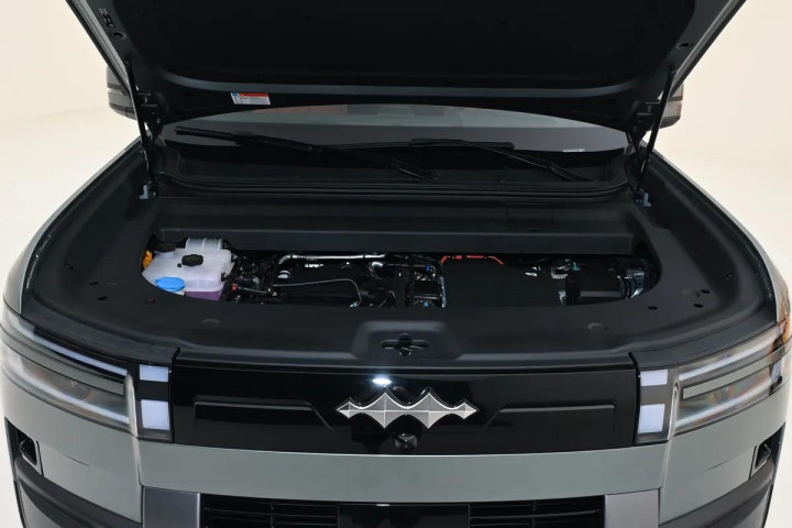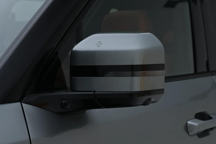 初见方程豹钛7,你很难不被强大的气场所折服。它采用了方程豹家族标志性的“方盒子”造型,但又在细节处注入了未来感十足的“星际方舟”设计语言。封闭式前格栅搭配双层L形灯带,点亮时如同宇宙飞船的推进器,科技感与辨识度瞬间拉满。车身侧面,干净纯粹的硬派棱线,搭配车身同色轮眉和方形外后视镜,还真有路虎卫士那种穿梭都市的“City感”。在展台灯光下,钛7的高闪珠光漆面熠熠生辉,据悉未来还将推出全车渐变改色方案,将个性玩到极致。这无疑是“面子”很直观的体现,它无需言语,便已宣告了车主不凡的品味,多带劲。当我绕着车走了一圈,亲手触摸到侧开尾门上那个硬派感十足的外挂式备胎箱时,心潮澎湃,觉得硬派方程豹钛7太适合我这种猛男了。
